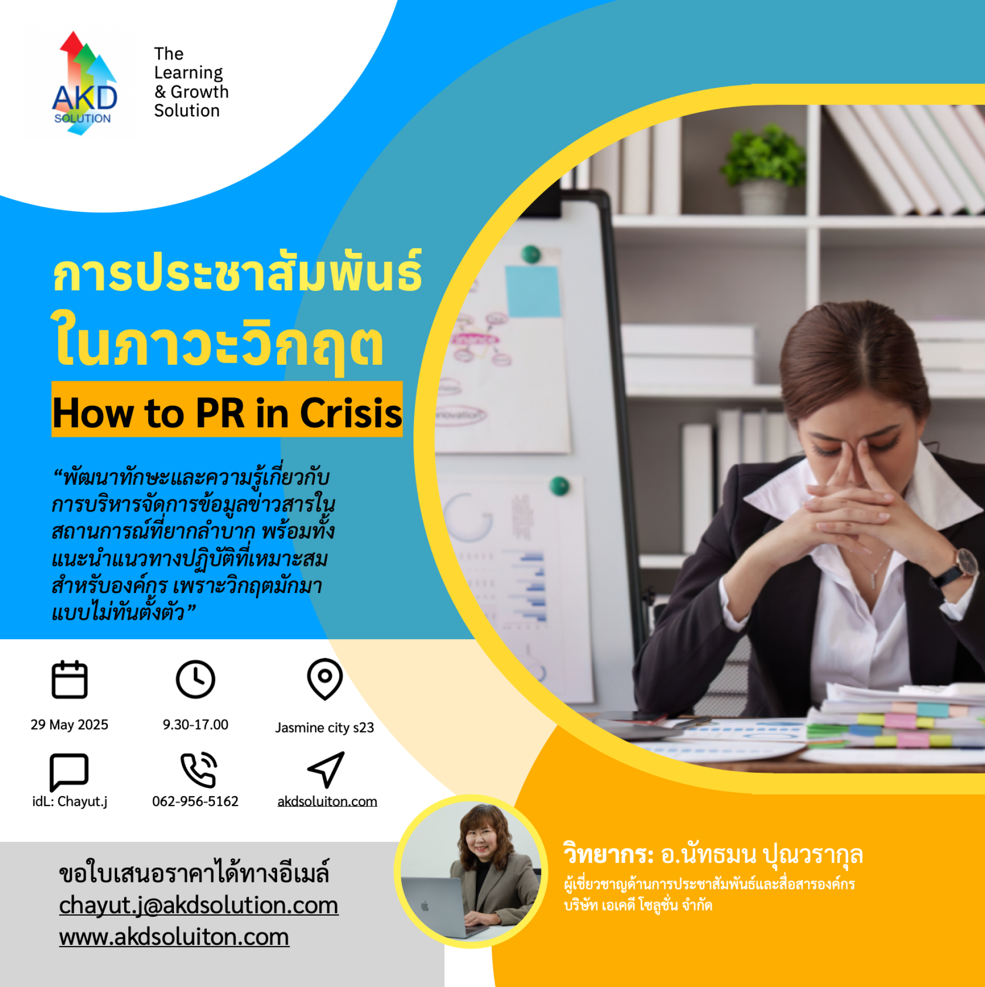 AKD ขอเชิญอบรมเชิงปฏิบัติการ ในหัวข้อ การประชาสัมพันธ์ในภาวะวิกฤต (How to PR in Crisis)